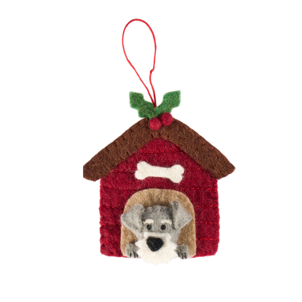 This unique decoration is a detailed and heartwarming felt vignette, capturing the beloved Schnauzer in its sanctuary: